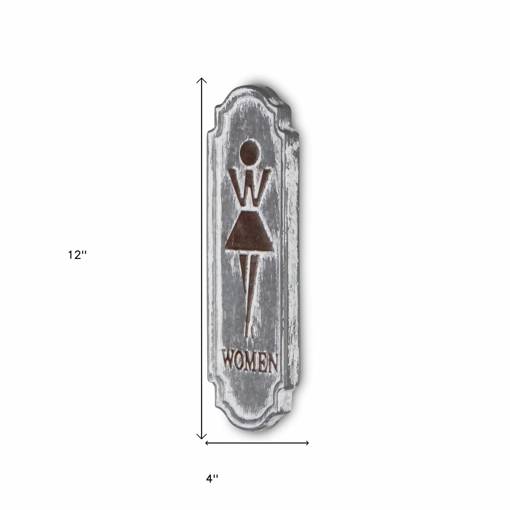 Bring some sizzle to your space with this eye-catching 12" rustic gray and brown metal womens room wall decor. Hang on your wall to add some decoration and identification. Unique and eye-catching, this sign will Instantly liven up your space. 12" H x 4" W x 0.5" D