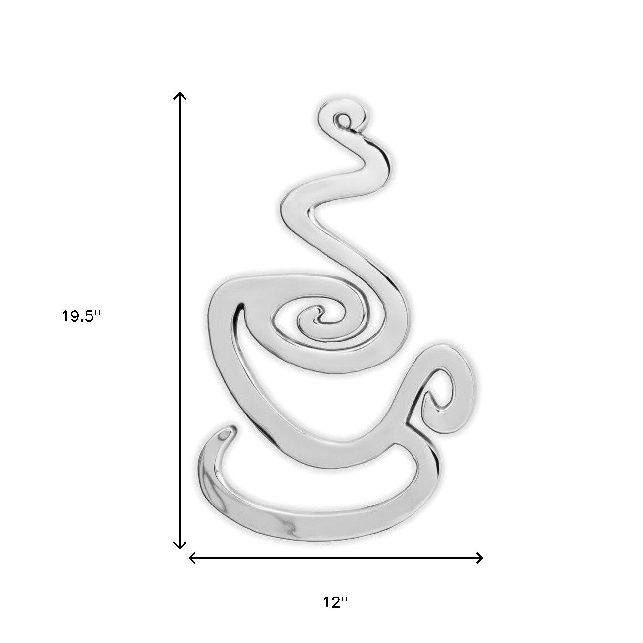 The buffed silver cast aluminum coffee cup wall decor is the perfect decorative accessory for your home. Adding this hanging wall art to your kitchen, dining room, or cafe to make your space feel more finished and attractive. Made of sturdy cast aluminum, this abstract steaming coffee cup decor is a great way to spruce up your walls and pay homage to the revered cup of joe. 19.5" H x 0.5" W x 12" D
