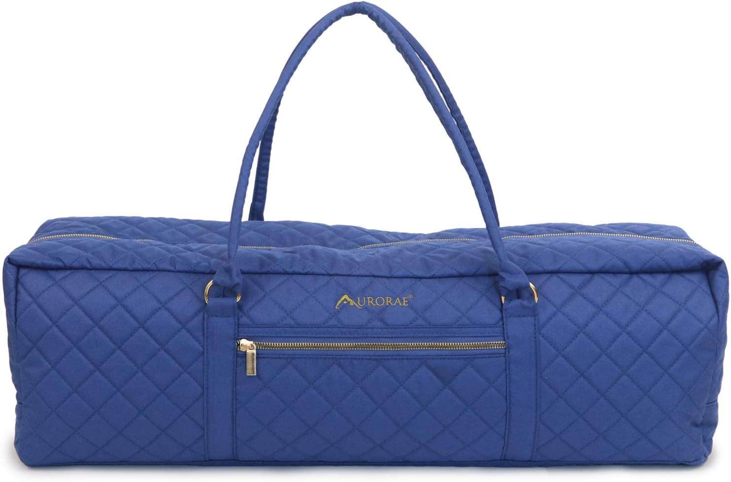 AURORAE Yoga Mat Duffel Bag Extra Large XL Solid Quilted Canvas with Embroidery, outside Pocket with Secure Zipper Closure