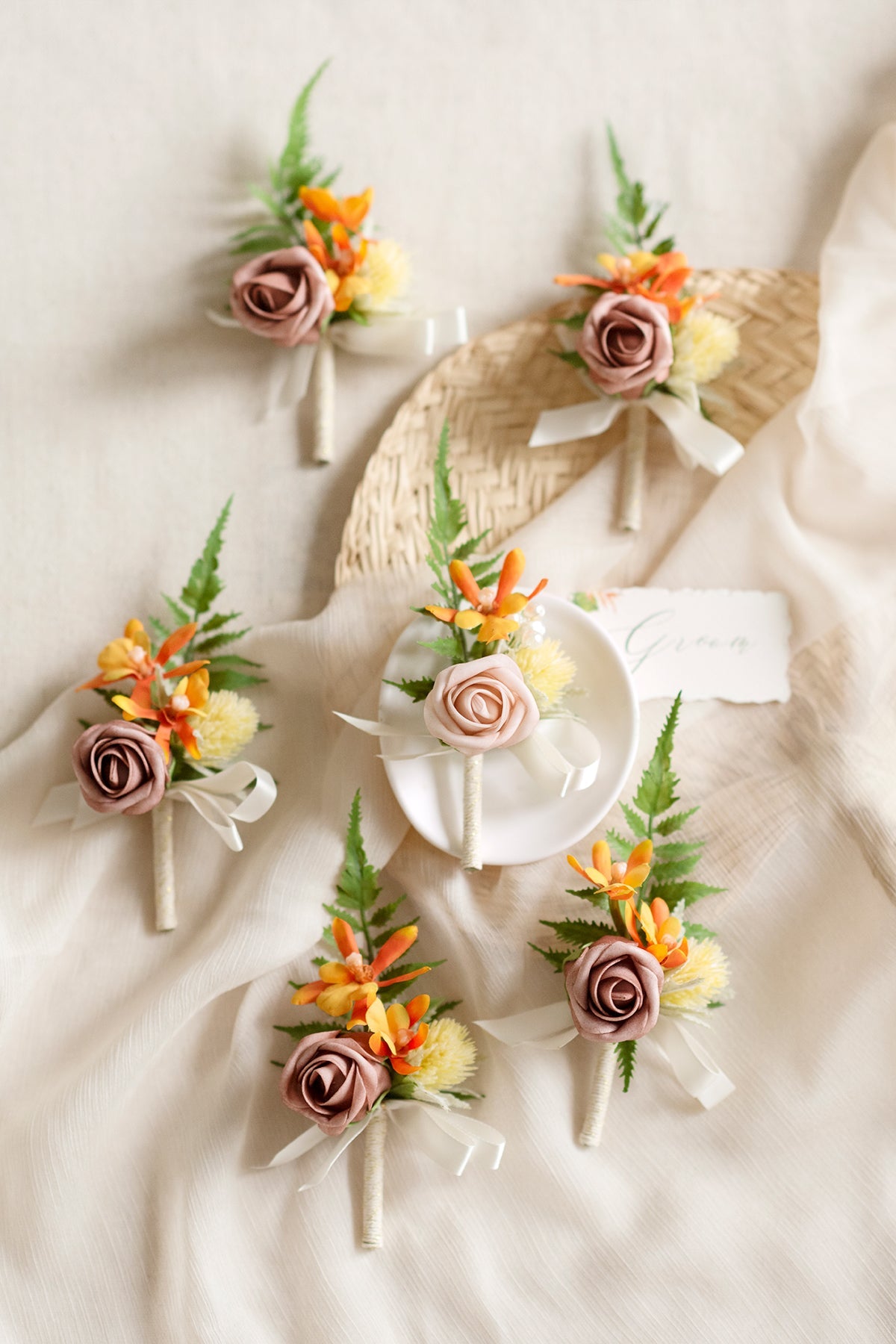 Boutonnieres in Tropical Citrus & Pink | Clearance