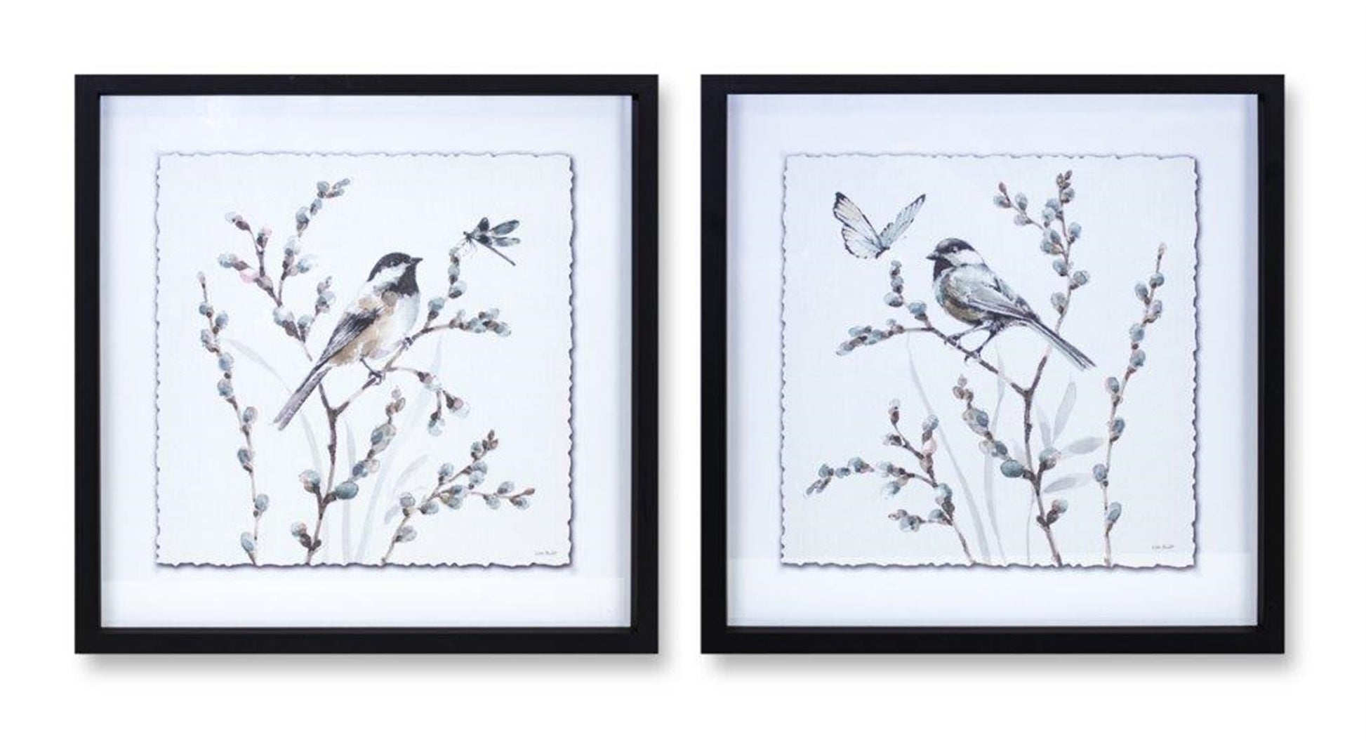 Watercolor Willow and Bird Print Under Glass (Set of 2)