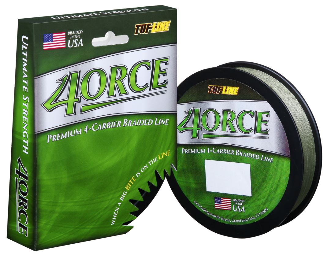 Taking you to a new level of angling, the Tuf-Line 4orce utilizes a new 4- carrier TUF-X fiber braid, that is the ideal choice for ultimate strength. Delivering a round, incredibly strong finish, and a proprietary coating process, this abrasion resistant line has minimal stretch that drives hooks deep. The perfect choice for fishing heavy cover or if you are just looking for the ultimate fresh and saltwater braid with brute strength. When a big bite is on the line……choose 4ORCE.