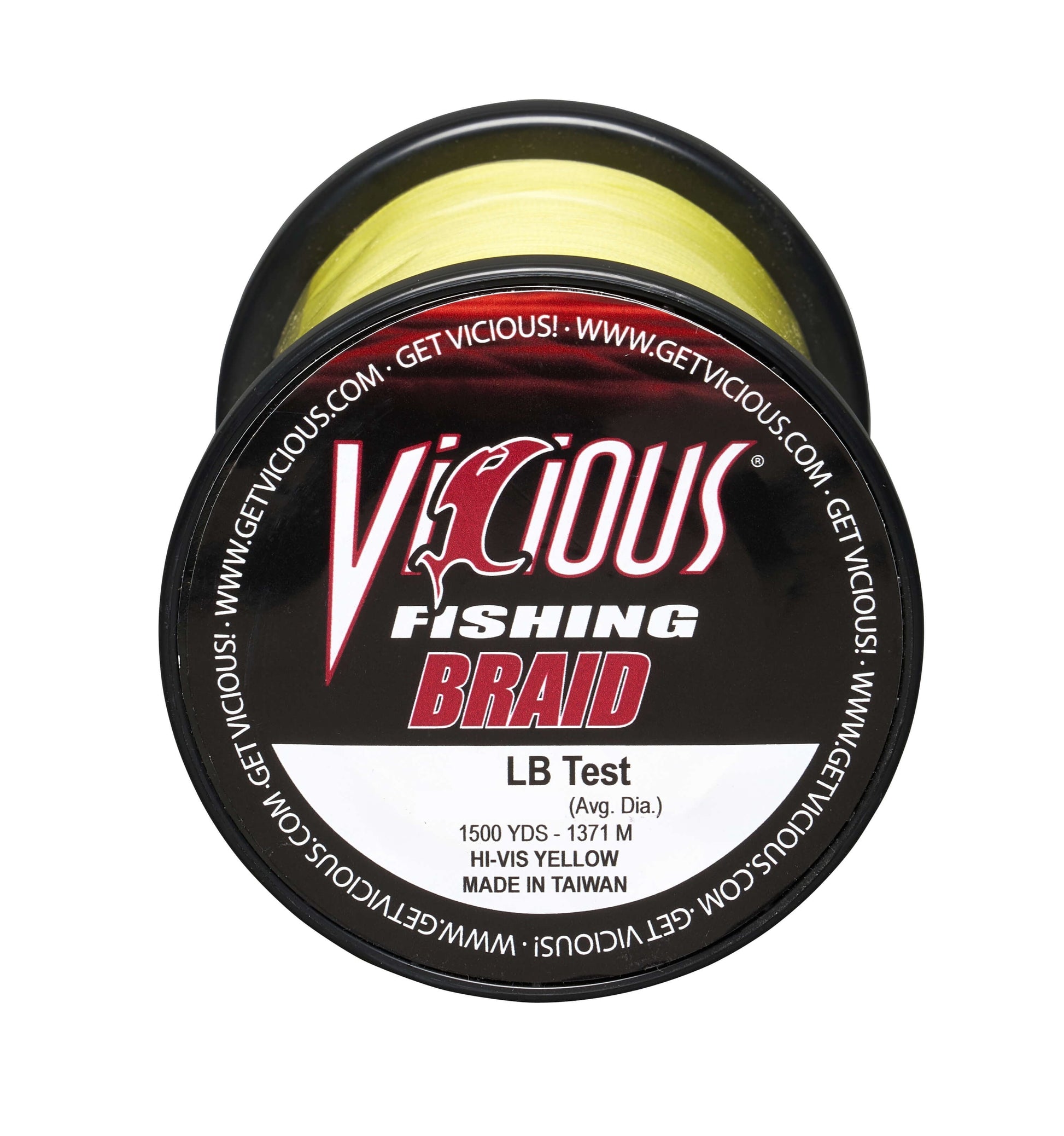 Vicious Fishing 80lb Hi-Vis Yellow Braid, 1500 Yards, .0169 in