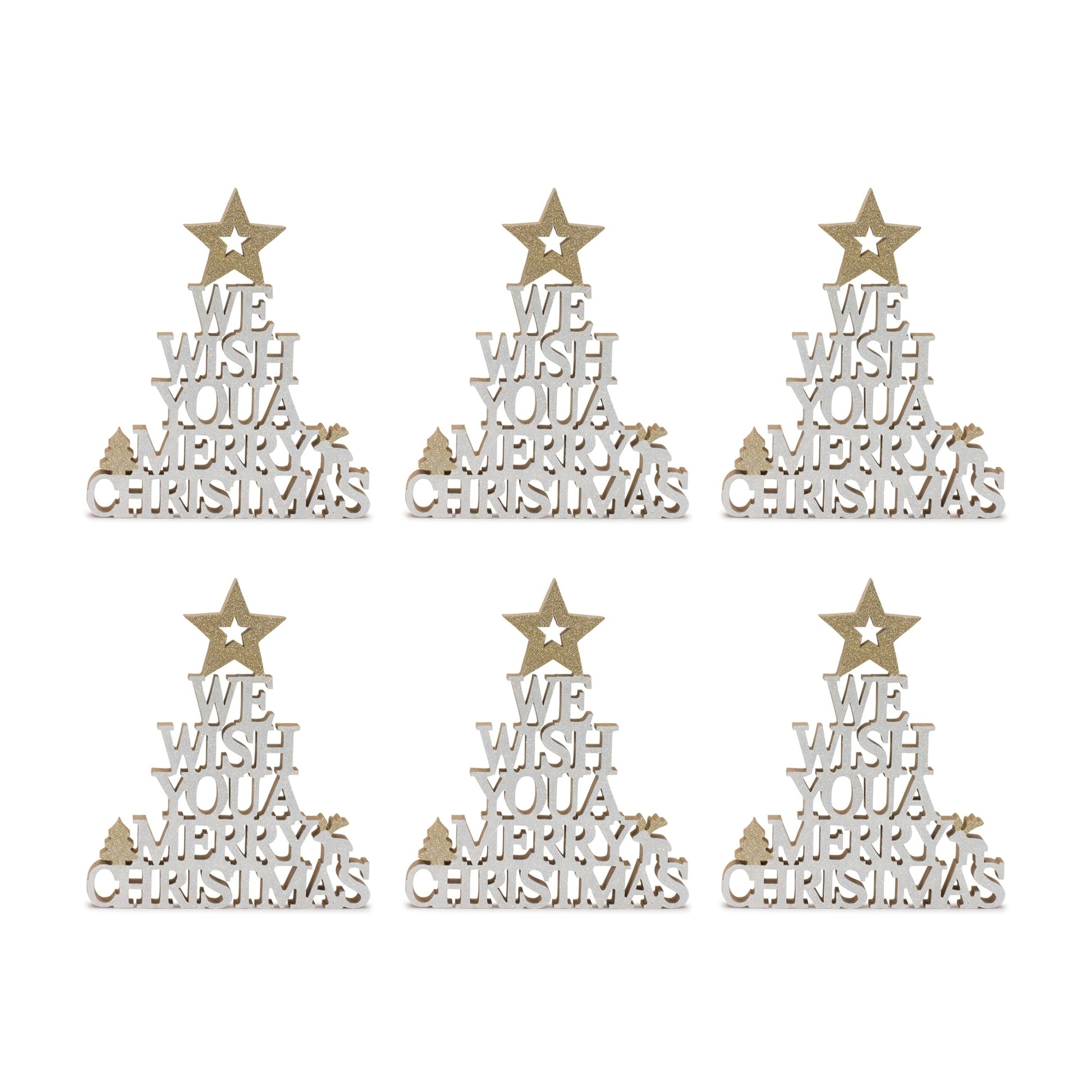 Wish You a Merry Christmas Wood Cut Out Sign (Set of 6)
