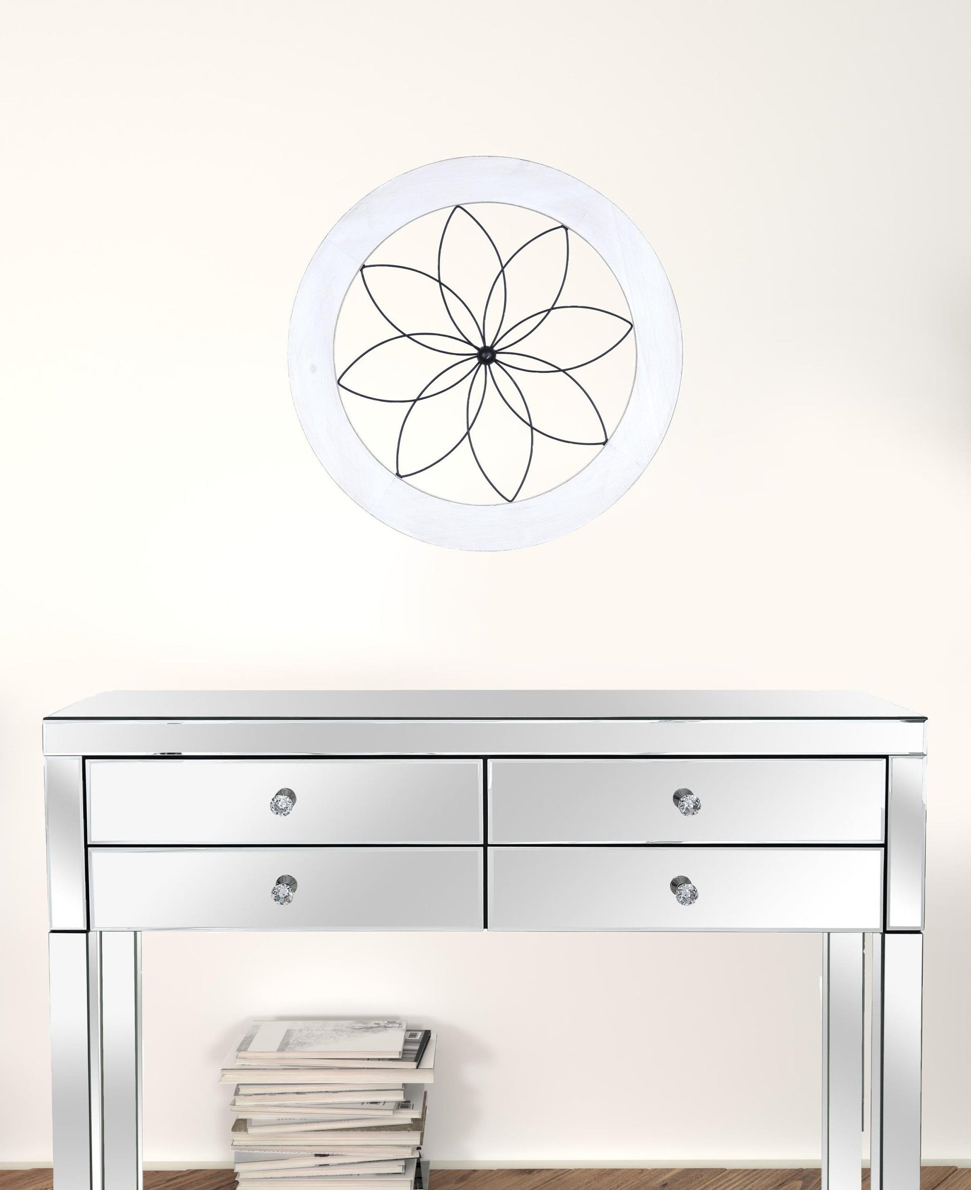 This Wire Flower Framed Wall Decor is the perfect way to add a minimal design element to the walls of your home. The frame on the outside is made from MDF wood while the flower in the center is made from thin metal rods. The outside frame has a white finish on top of it and is in a round shape. The flower in the middle has a black color and has a very minimal and simple line design. The flower has a two-dimensional feel to it which adds depth to the whole piece. You can use this decor piece anywhere in your home without worrying about any colors clashing as it has a very neutral colorway. 20" H x 20" W x 1" D