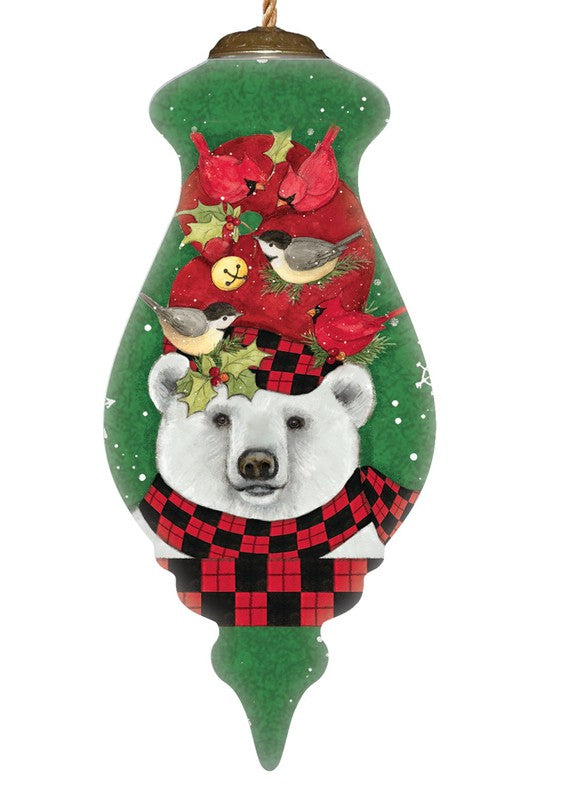 Woodland Plaid Pals Polar Bear Glass Ornament