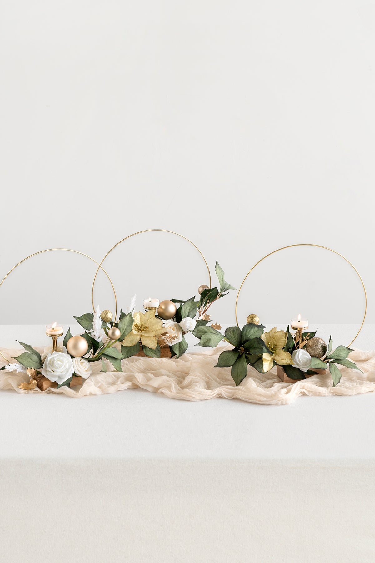 Wreath Hoop Centerpiece Set in Champagne Christmas