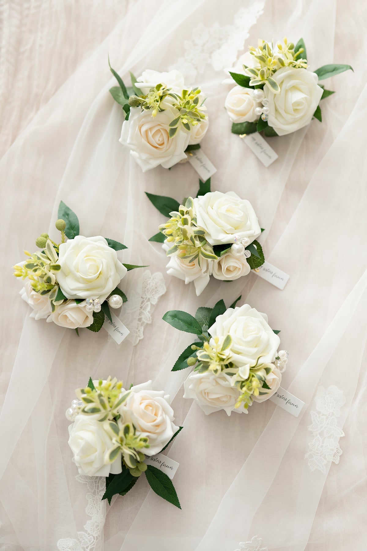 Wrist Corsages in Ivory & Cream