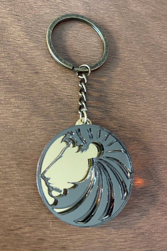 The Zodiac Series by BAEZ Decor These stylish keychains represent the 12 signs of the Zodiac. The lion represents to sign of Leo. Custom engraved branding is not available on the Zodiac Series as it degrades the mirrored finish.